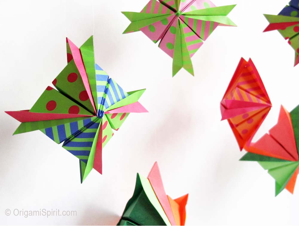 Modular origami is a technique in which two or more sheets of paper are folded into units, which are then fitted together to form one piece. You will be satisfied with this great example of modular origami, because it takes only two units to make a great puffy origami star.